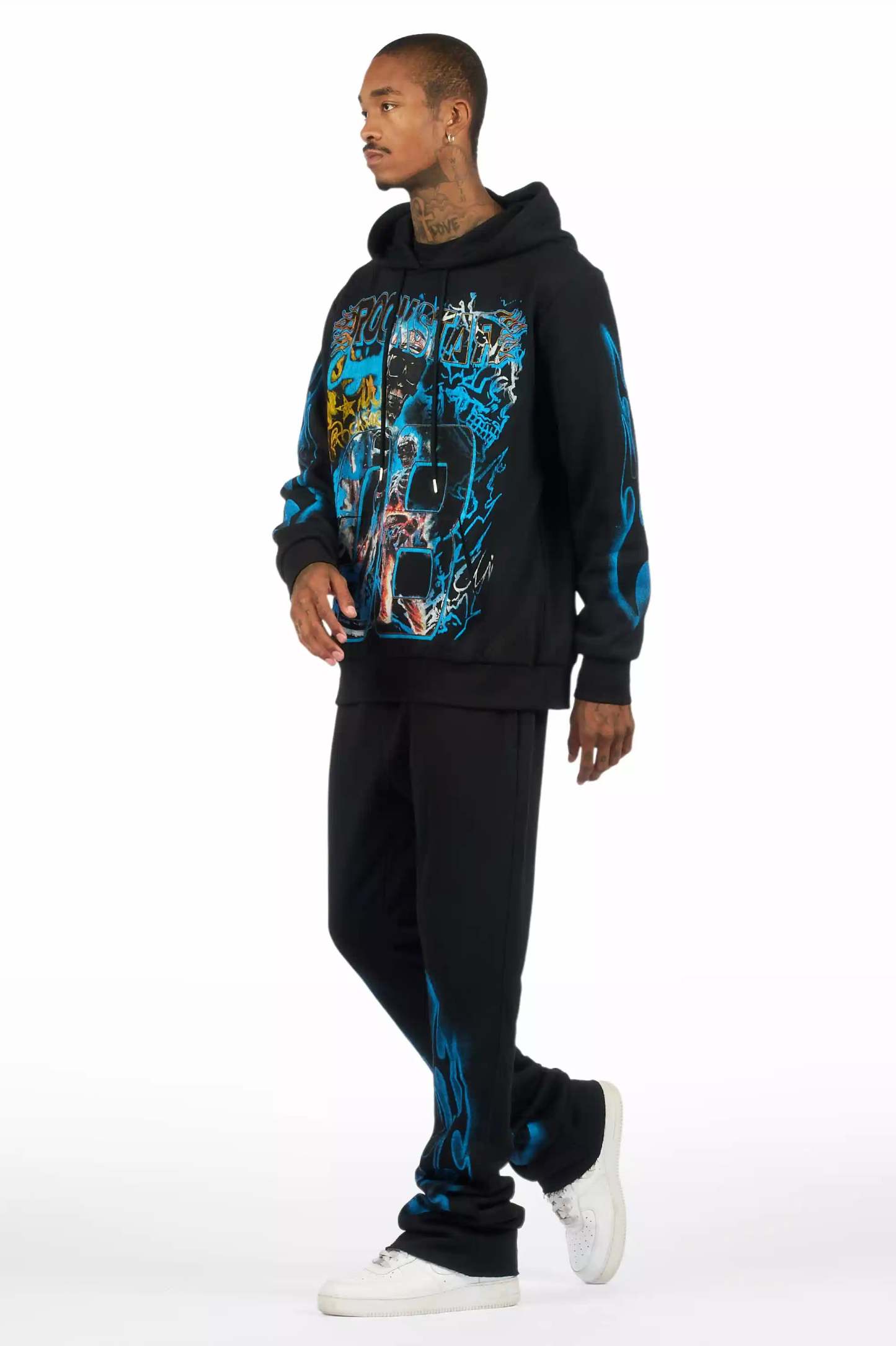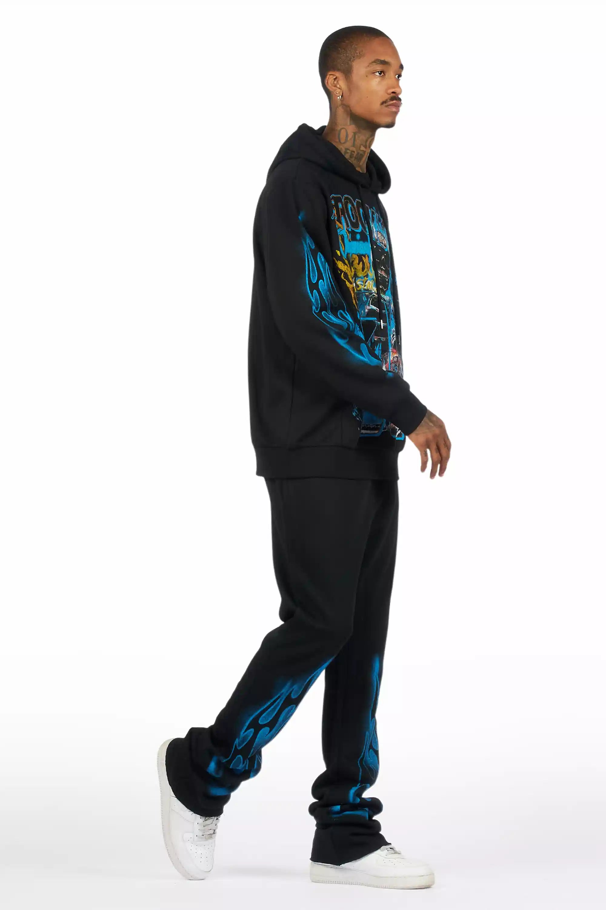 Eros Black Hoodie/Stacked Pant Track Set