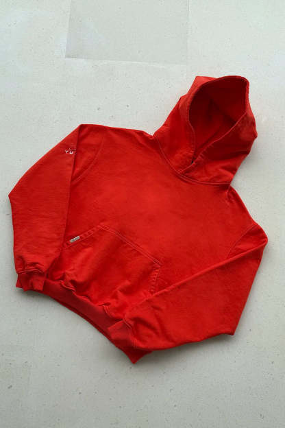 Introducing the Azure hoodie in ruby red colour, a piece conceived to portray freedom and exuberance as part of our SS24 summer collection. Designed with warm tones and a color palette never seen before in our brand in order to embody the essence of sunsets and everything surrounding summer.
