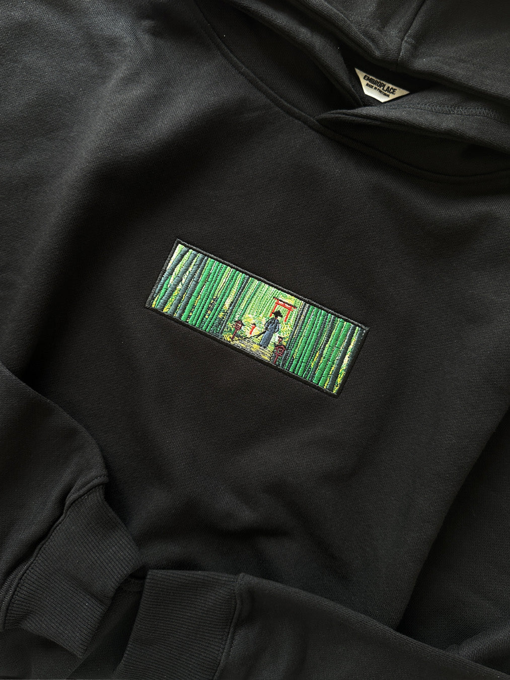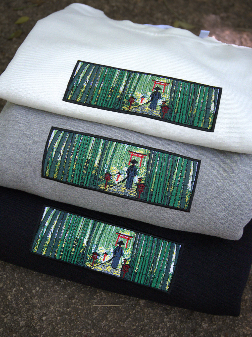 Introducing the new machine embroidery design "Samurai near a Torii Gate in a Bamboo Grove." Inspired by the bamboo forests of western Kyoto, this design captures a samurai standing before sacred Torii gates, surrounded by swaying bamboo — as if suspended between worlds.