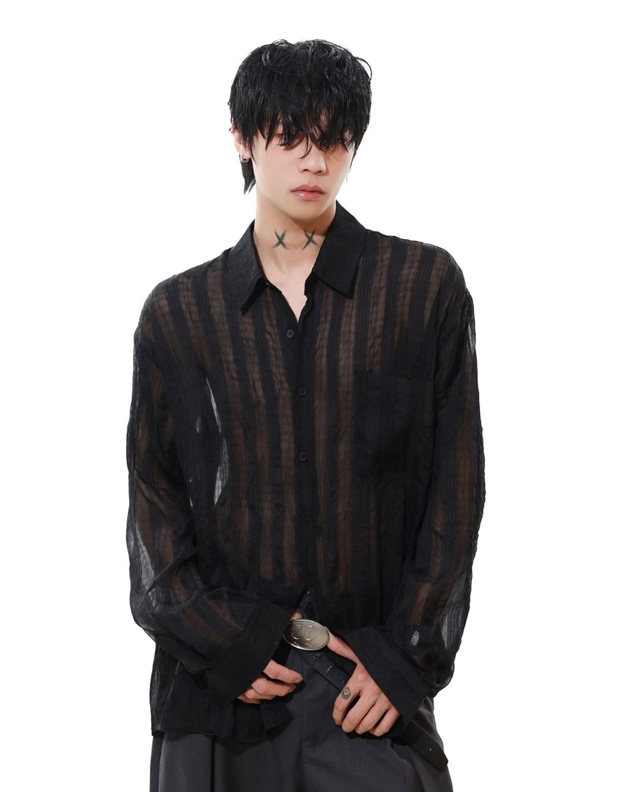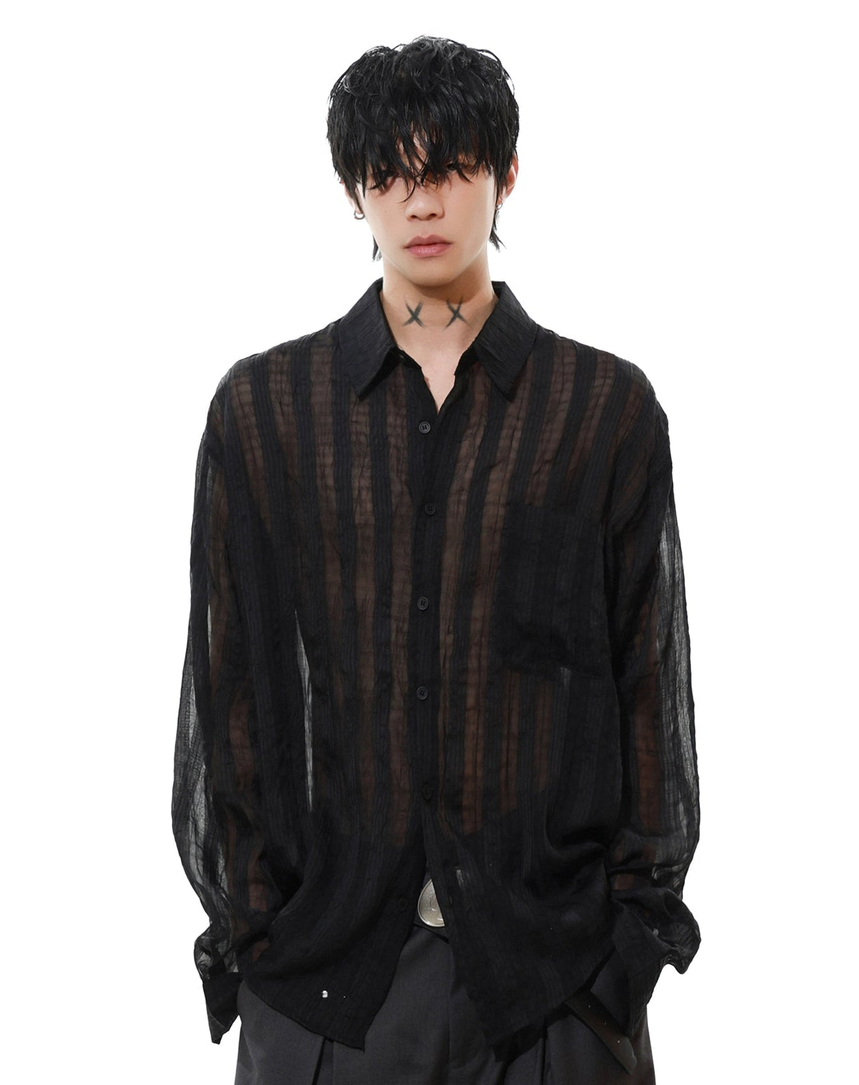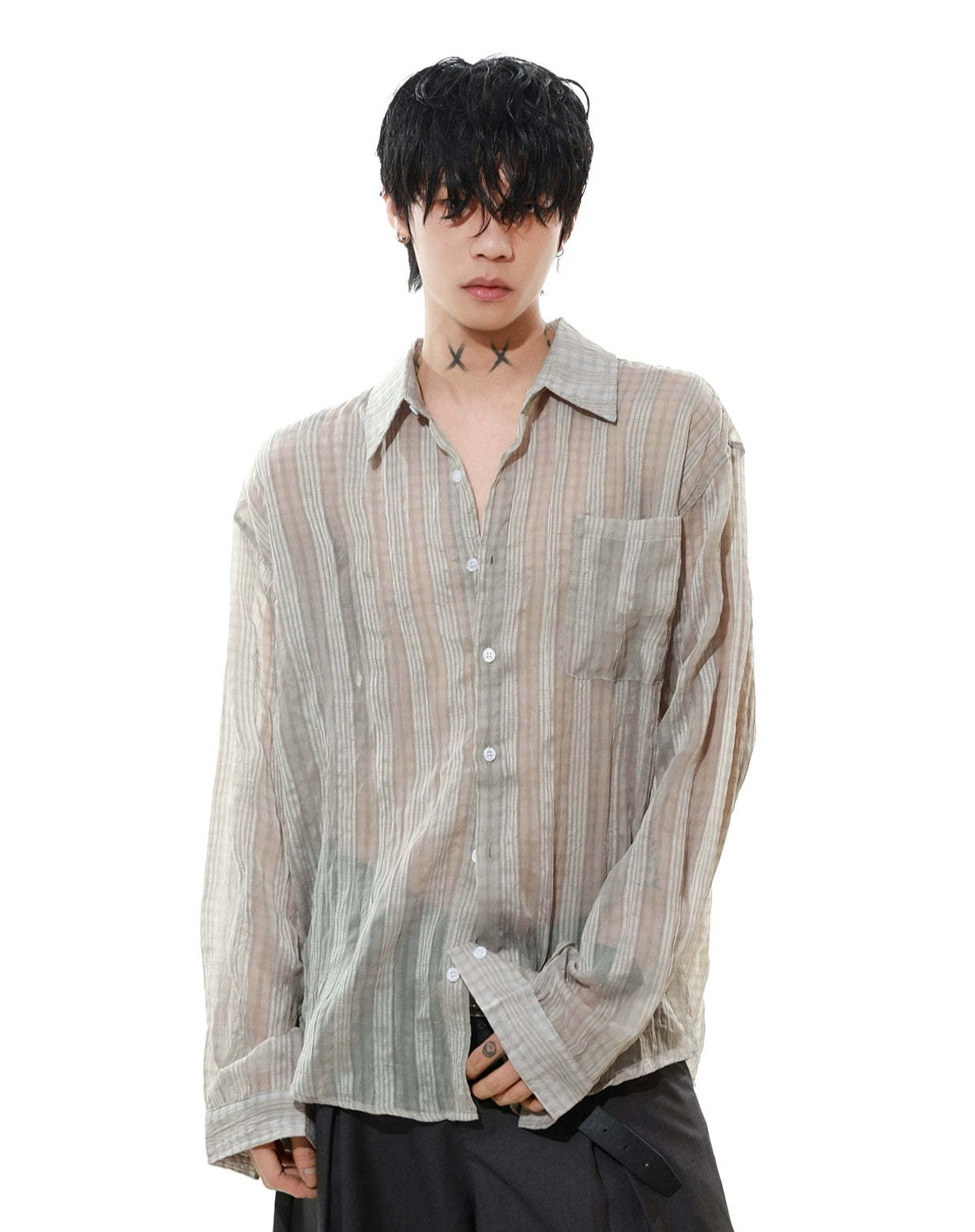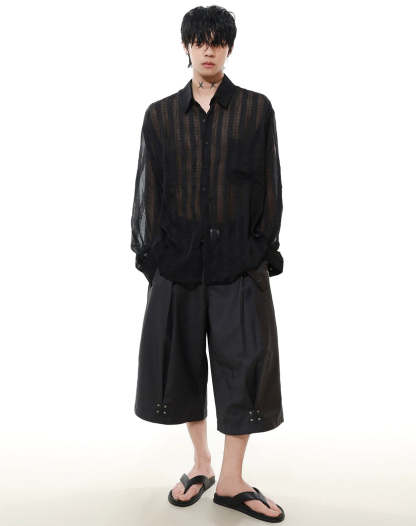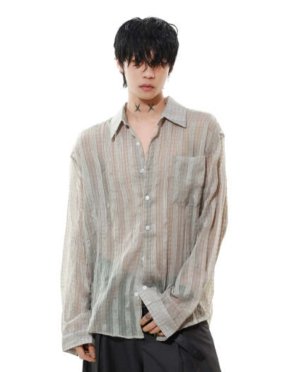 Effortlessly cool and surprisingly lightweight, this sheer striped button-up shirt adds just enough edge without trying too hard.