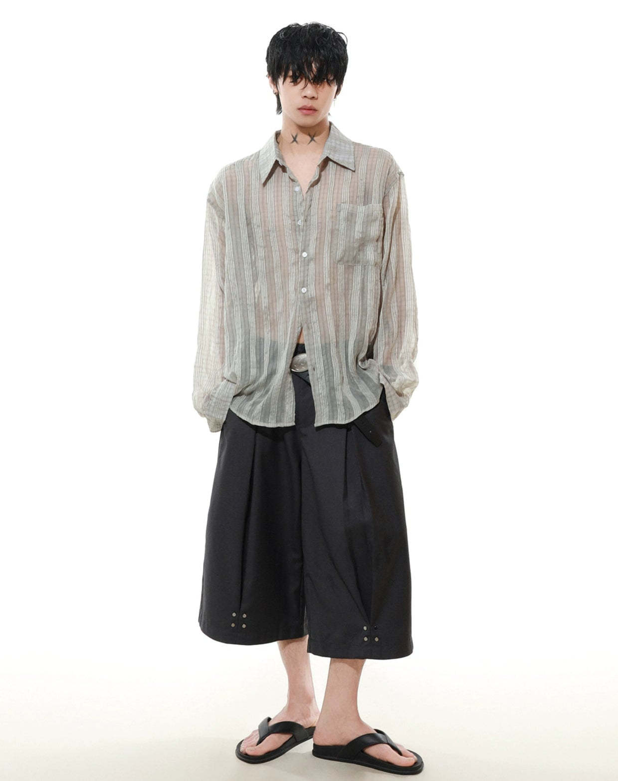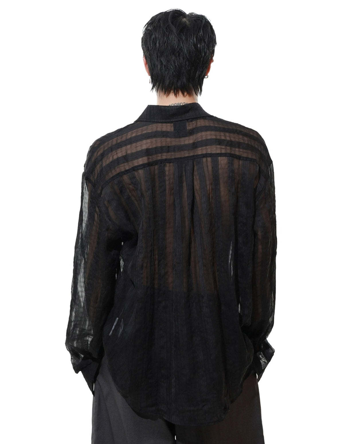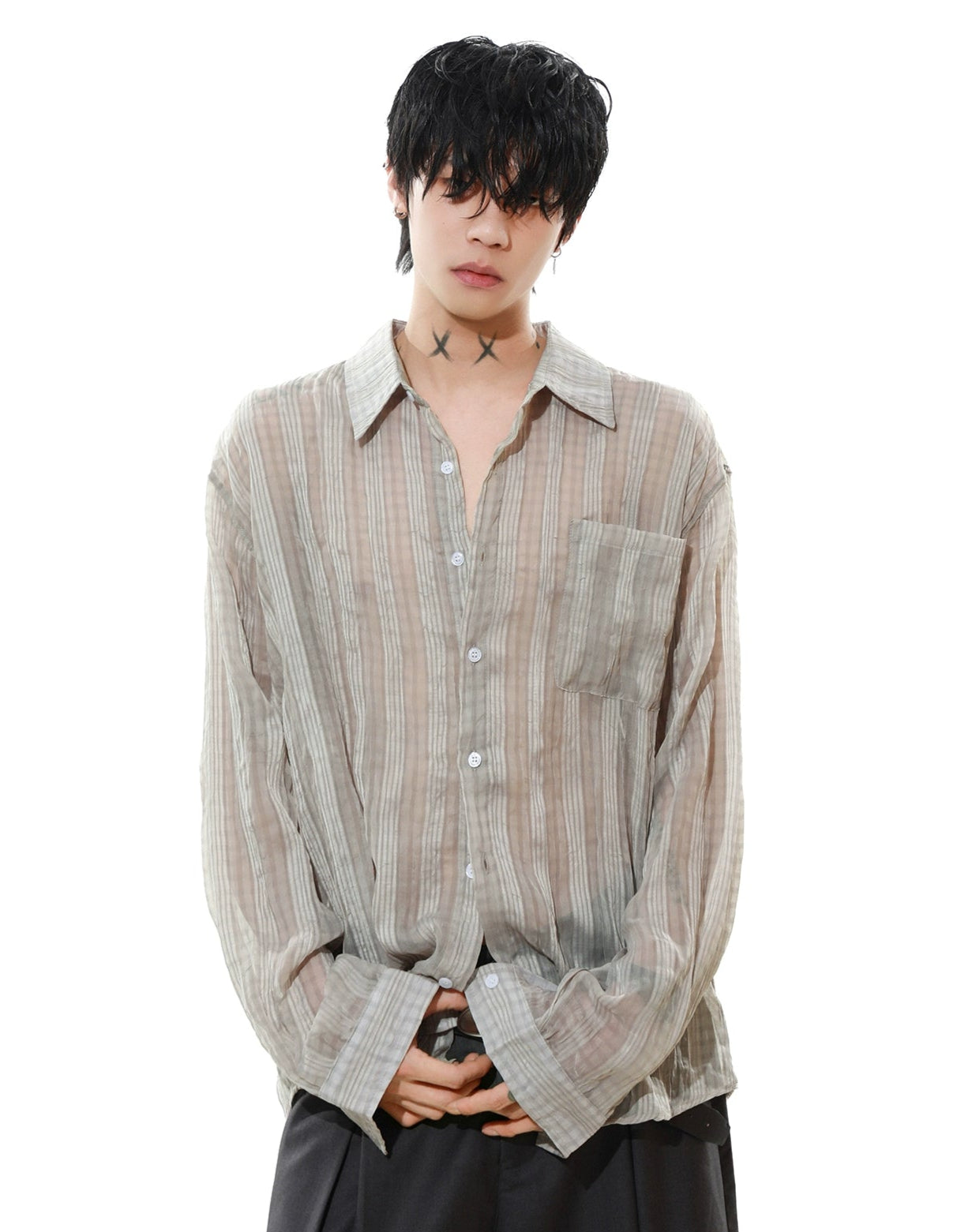 Effortlessly cool and surprisingly lightweight, this sheer striped button-up shirt adds just enough edge without trying too hard.