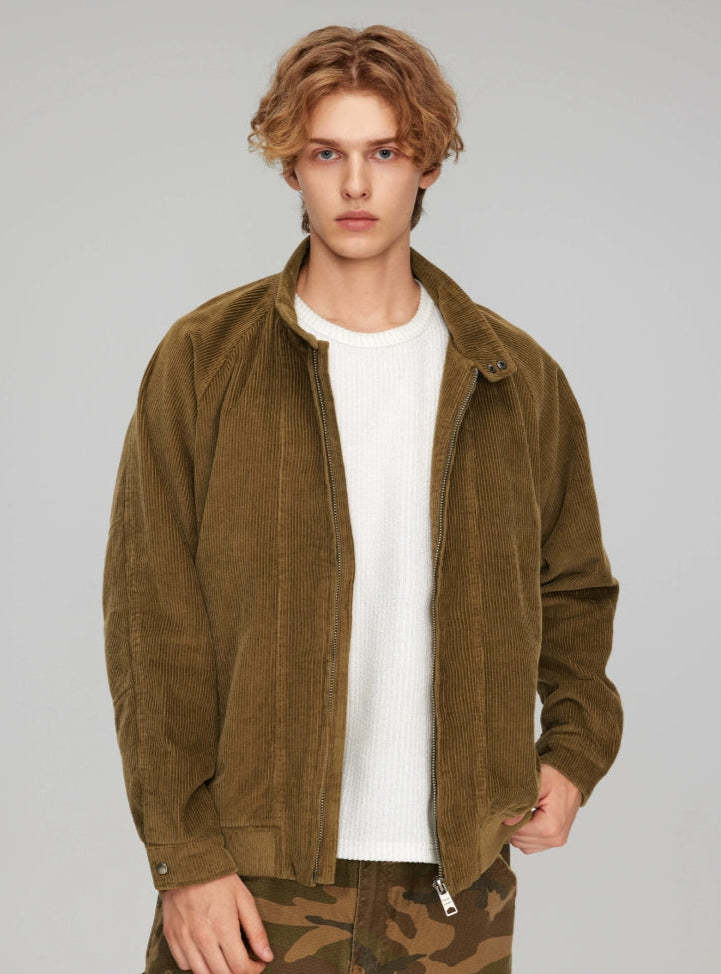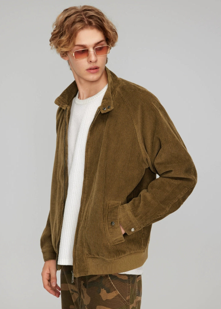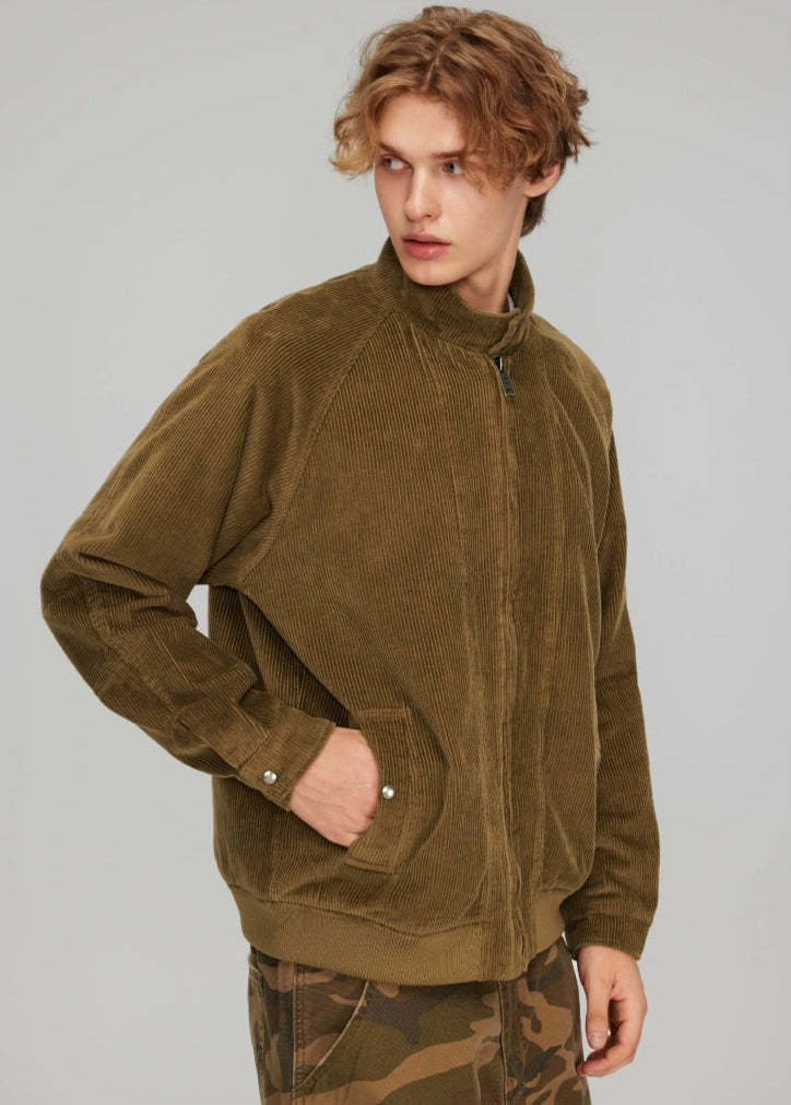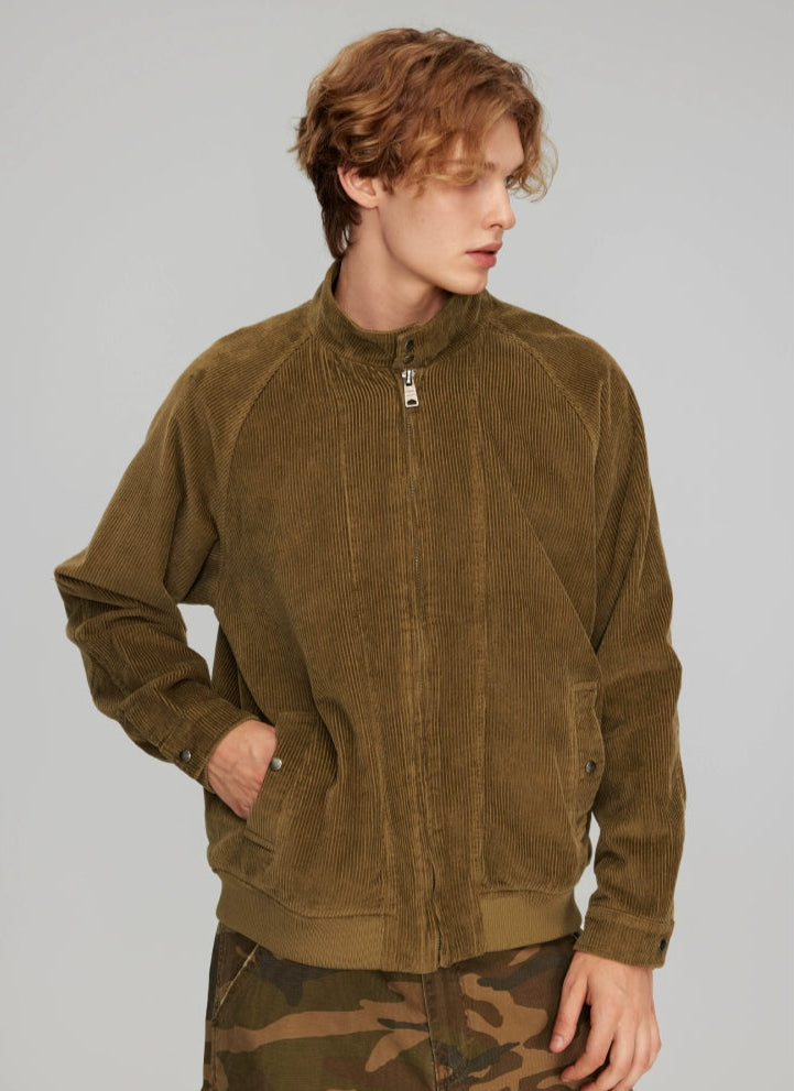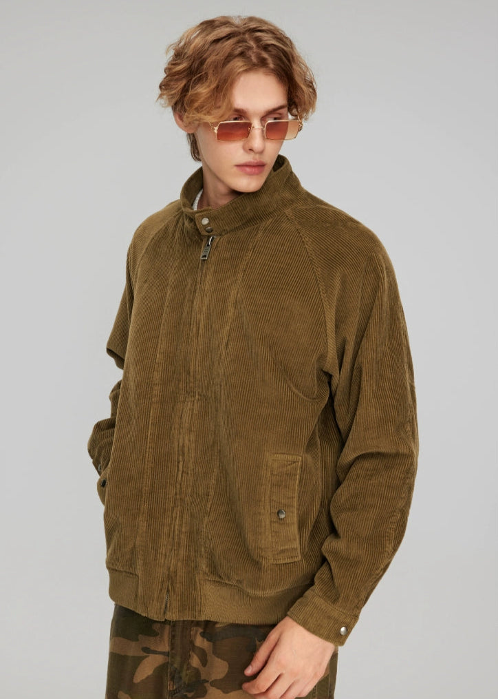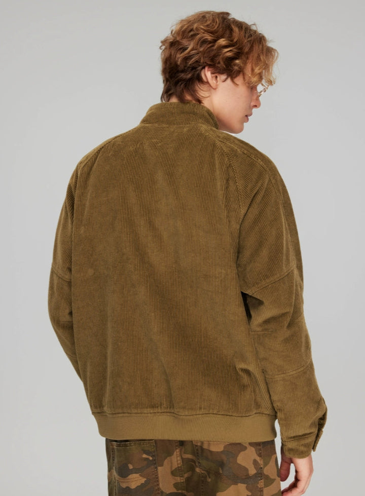 Crafted from structured corduroy with a lightly tailored fit, it features a zip front closure and snap-closure cuffs that add a utilitarian touch without overcomplicating your look. The soft ribbed hem and high stand collar keep it modern, while vertical grain corduroy plays into a retro feel rooted in minimalism.
