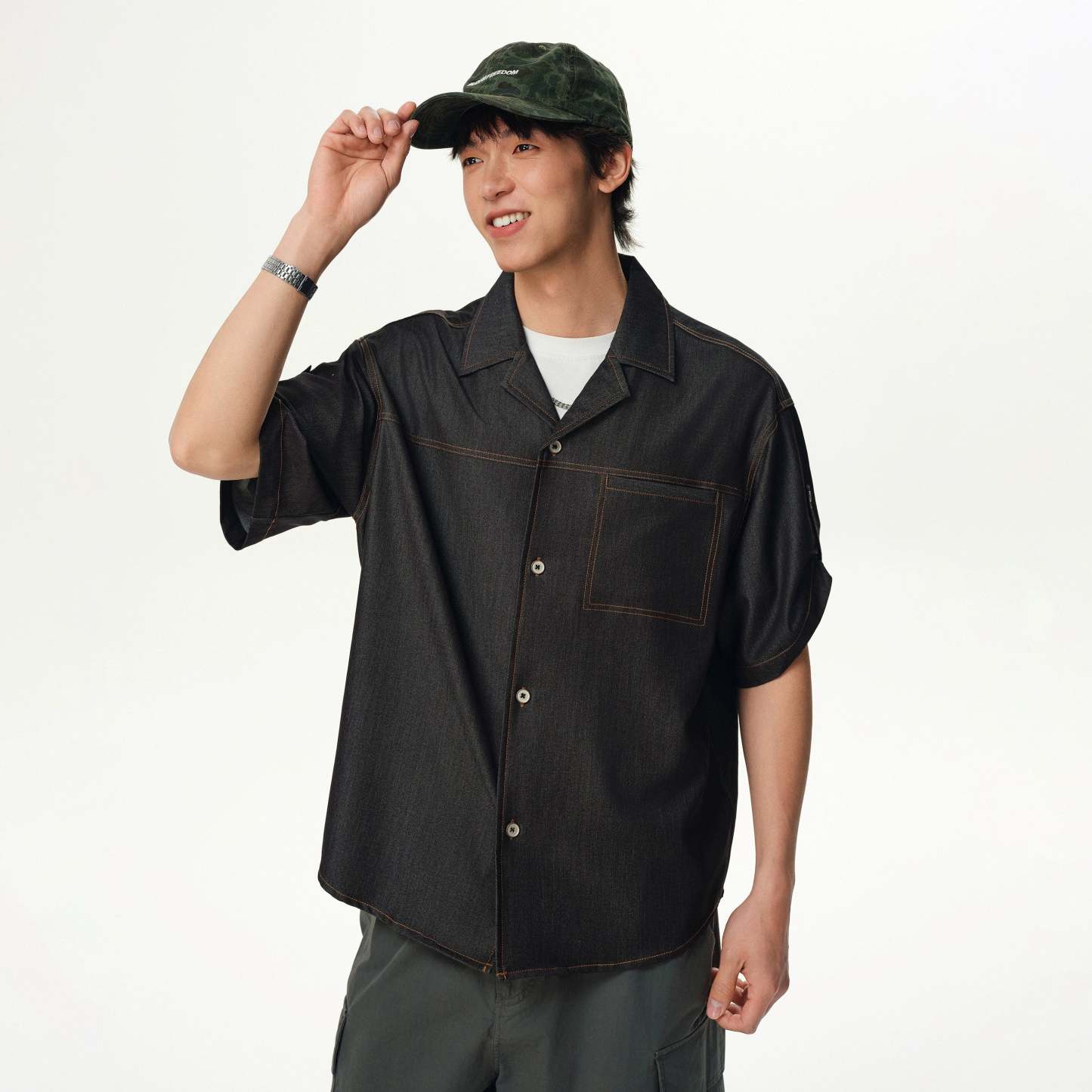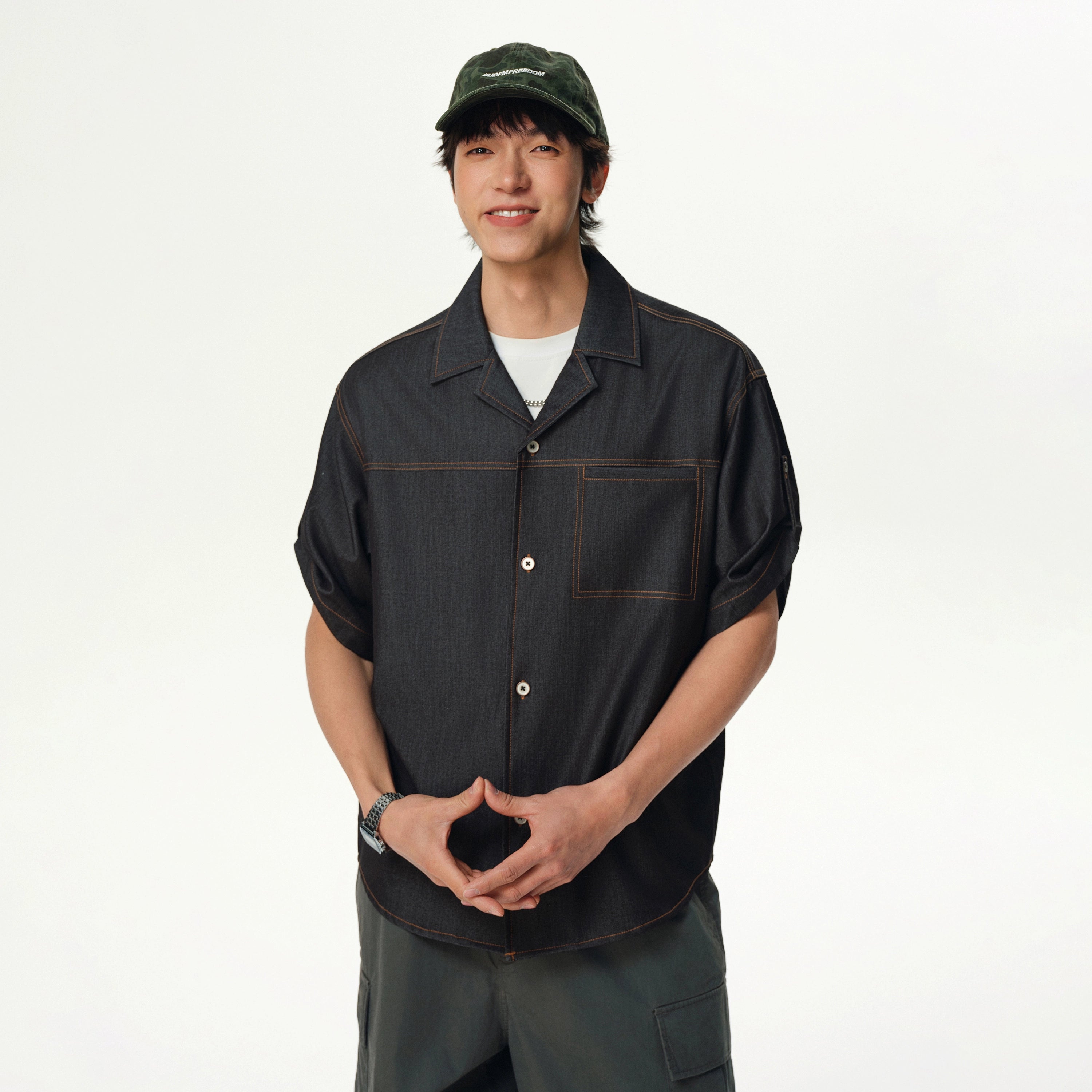 Wear it unbuttoned over a basic tee or button it all the way up for a cleaner look — it works either way. Ideal for casual days, city strolls, meetups, or late nights, this is the kind of shirt that doesn't ask for attention but gets it anyway.