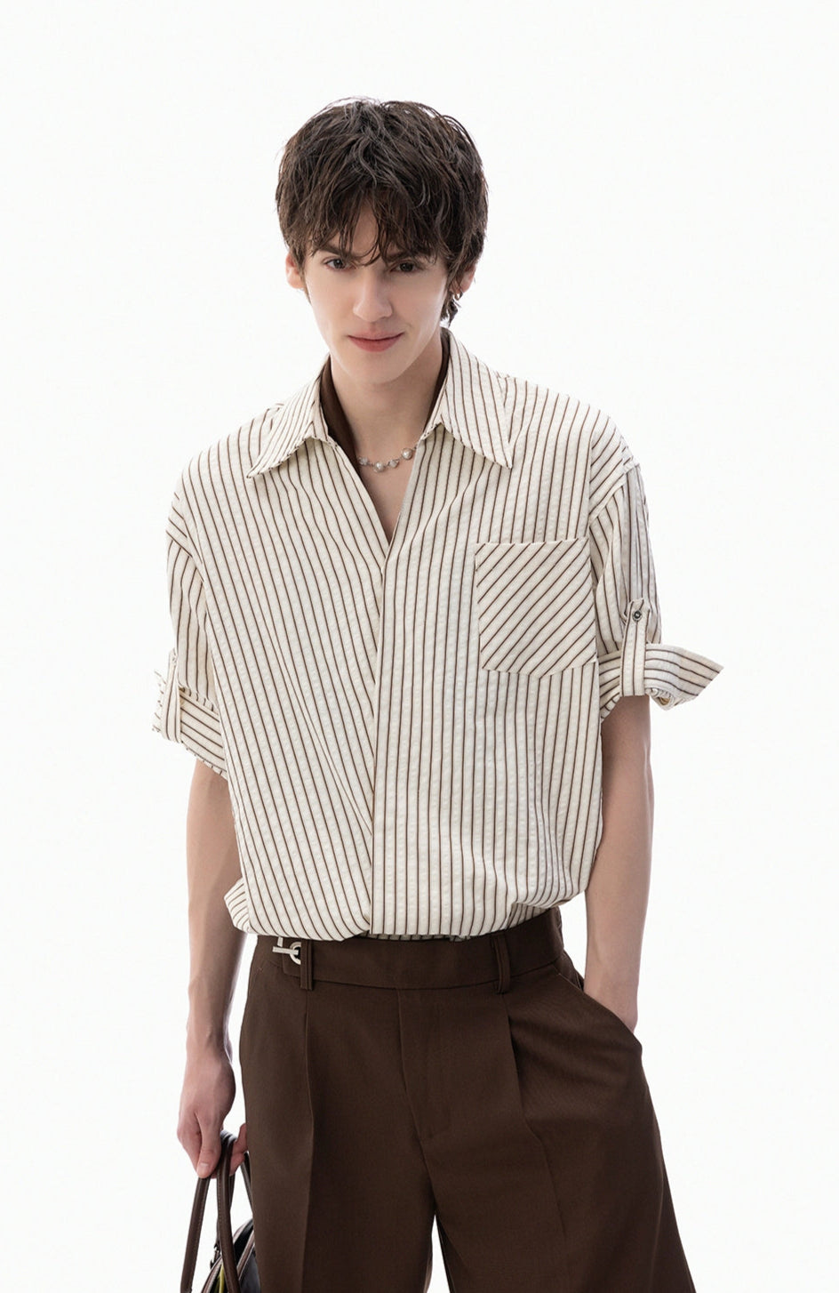Whether layered over a tee, tucked into pleated trousers, or left open with denim, this shirt adapts to whatever tone you’re going for.