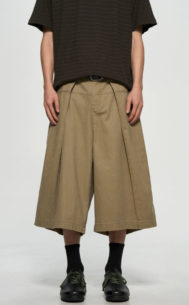 Cut with sharp pleats and exaggerated volume, these Structured Wide-Leg Pleated Bermuda Shorts bring definition and character to a relaxed silhouette.