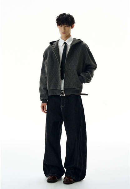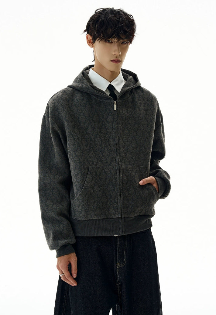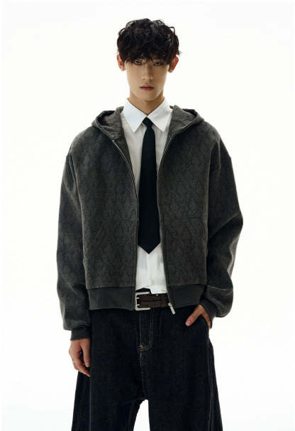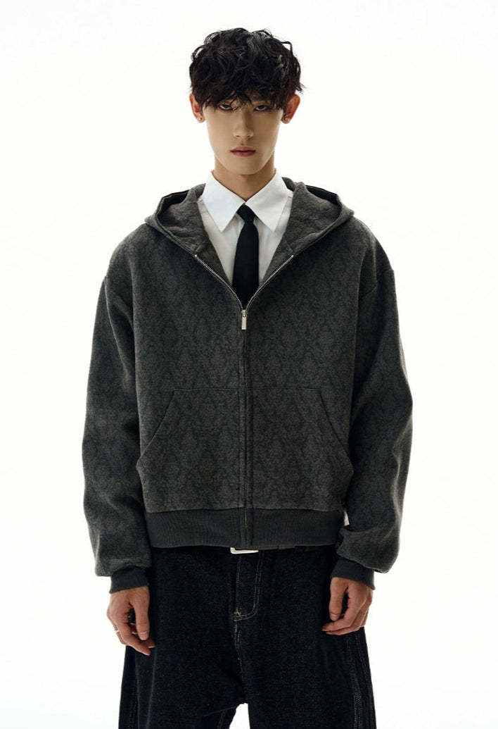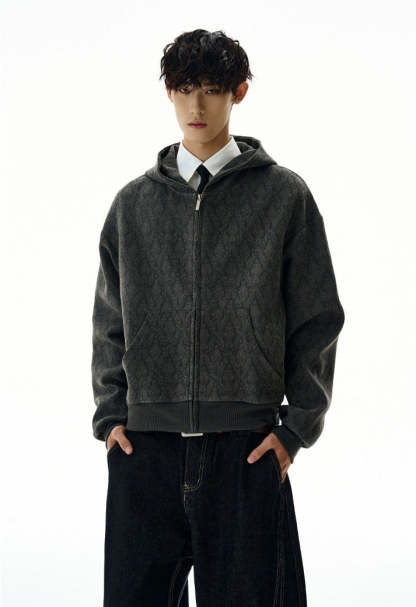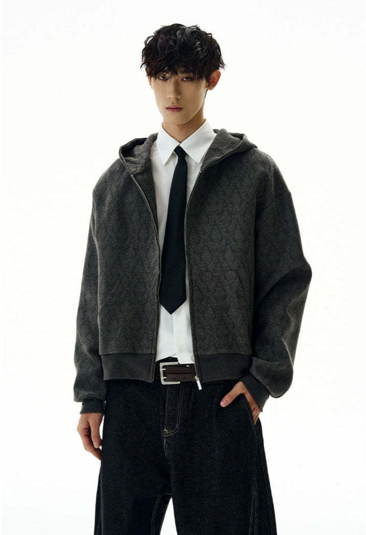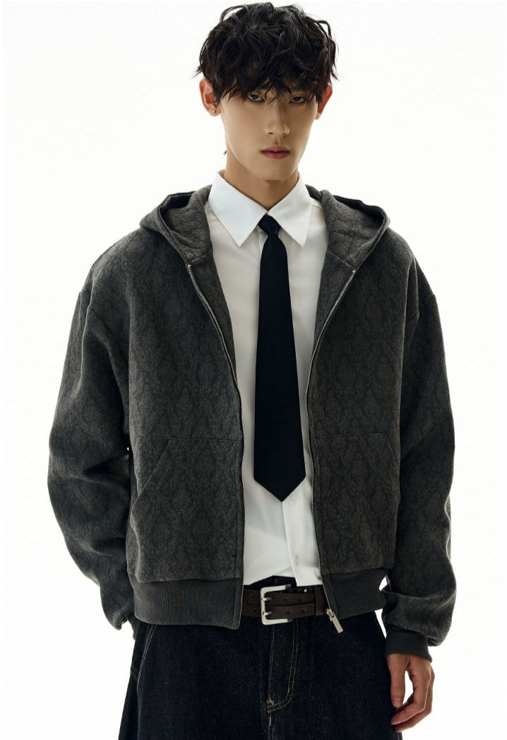 The Subtle Pattern Textured Zip-Up Hoodie Jacket offers a clean yet distinctive take on laid-back outerwear, featuring a refined textured jacquard pattern that adds character without shouting for attention.