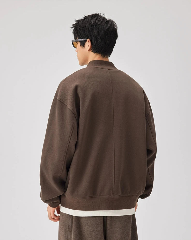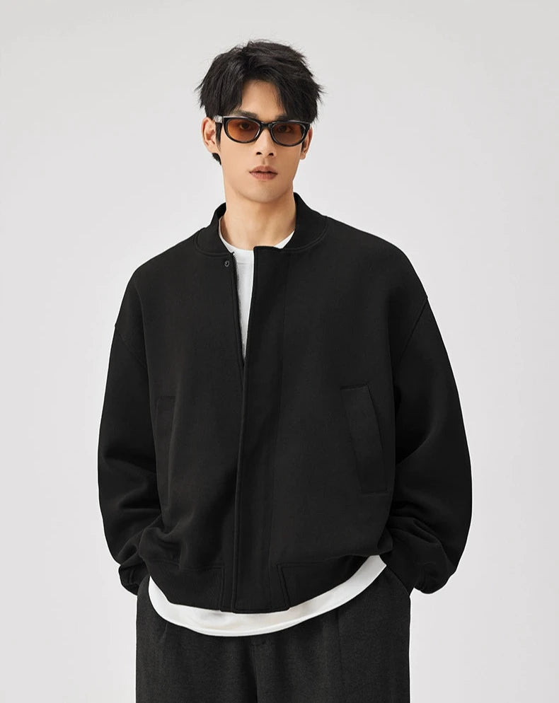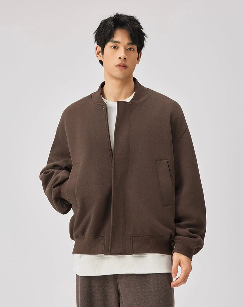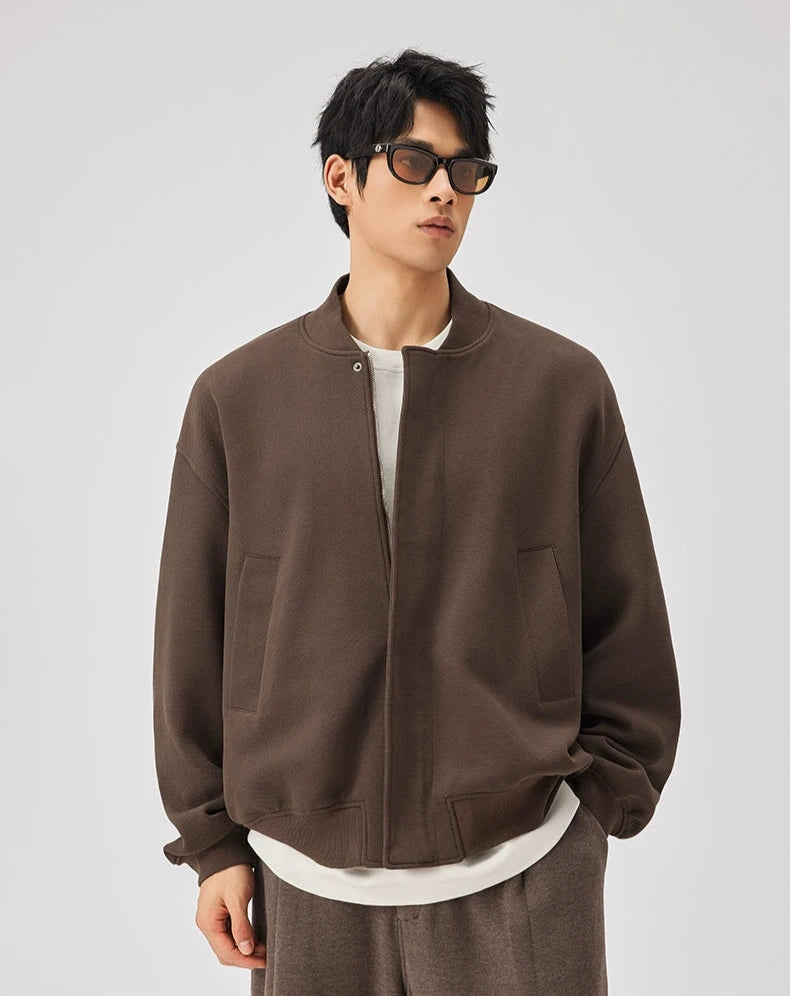 Expertly crafted from a premium fabric blend providing warmth without the weight, this jacket features a textured knit finish with a classic baseball collar that sits perfectly at the neck. Spacious front pockets add a functional touch, while the ribbed cuffs and hem ensure a snug fit to fend off the chill. Its versatile zip closure and relaxed, loose silhouette make it a go-to piece for casual outings and everyday wear.