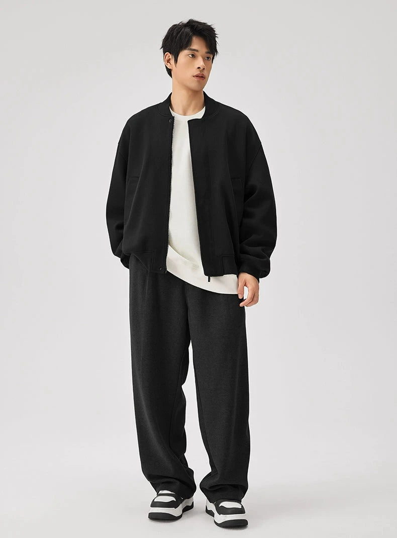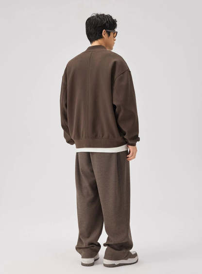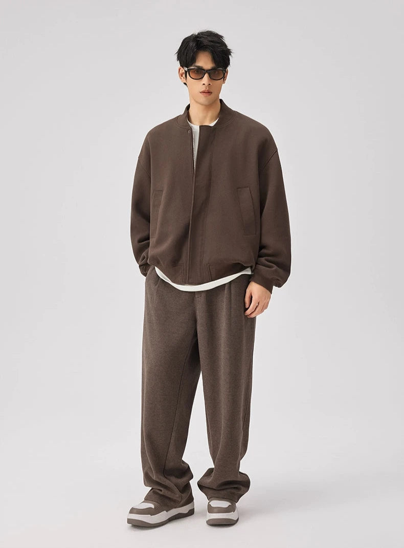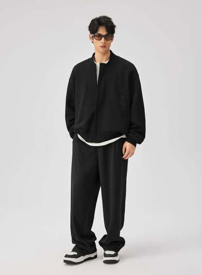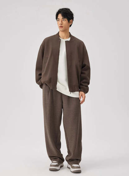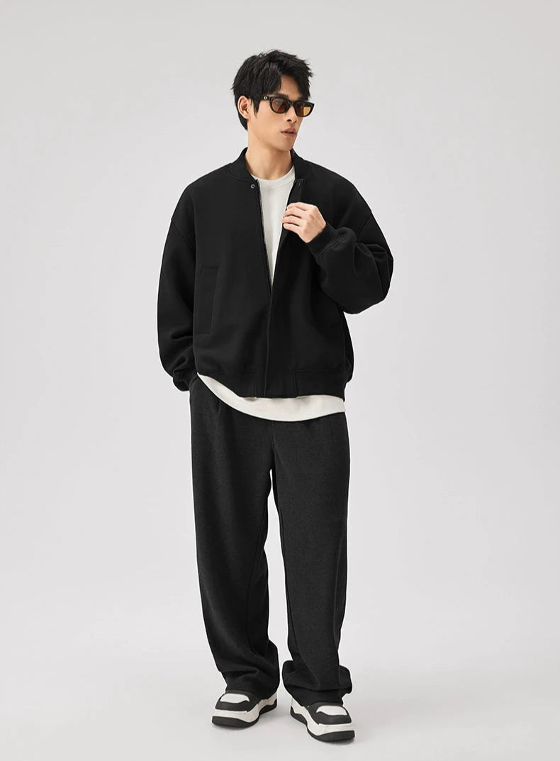 Expertly crafted from a premium fabric blend providing warmth without the weight, this jacket features a textured knit finish with a classic baseball collar that sits perfectly at the neck. Spacious front pockets add a functional touch, while the ribbed cuffs and hem ensure a snug fit to fend off the chill. Its versatile zip closure and relaxed, loose silhouette make it a go-to piece for casual outings and everyday wear.