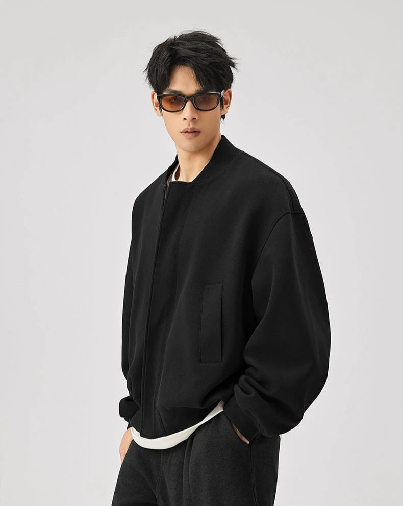 Infuse your wardrobe with the ultimate blend of comfort and sophisticated, carefree style with our Sweatshirt Zip Bomber Jacket.
