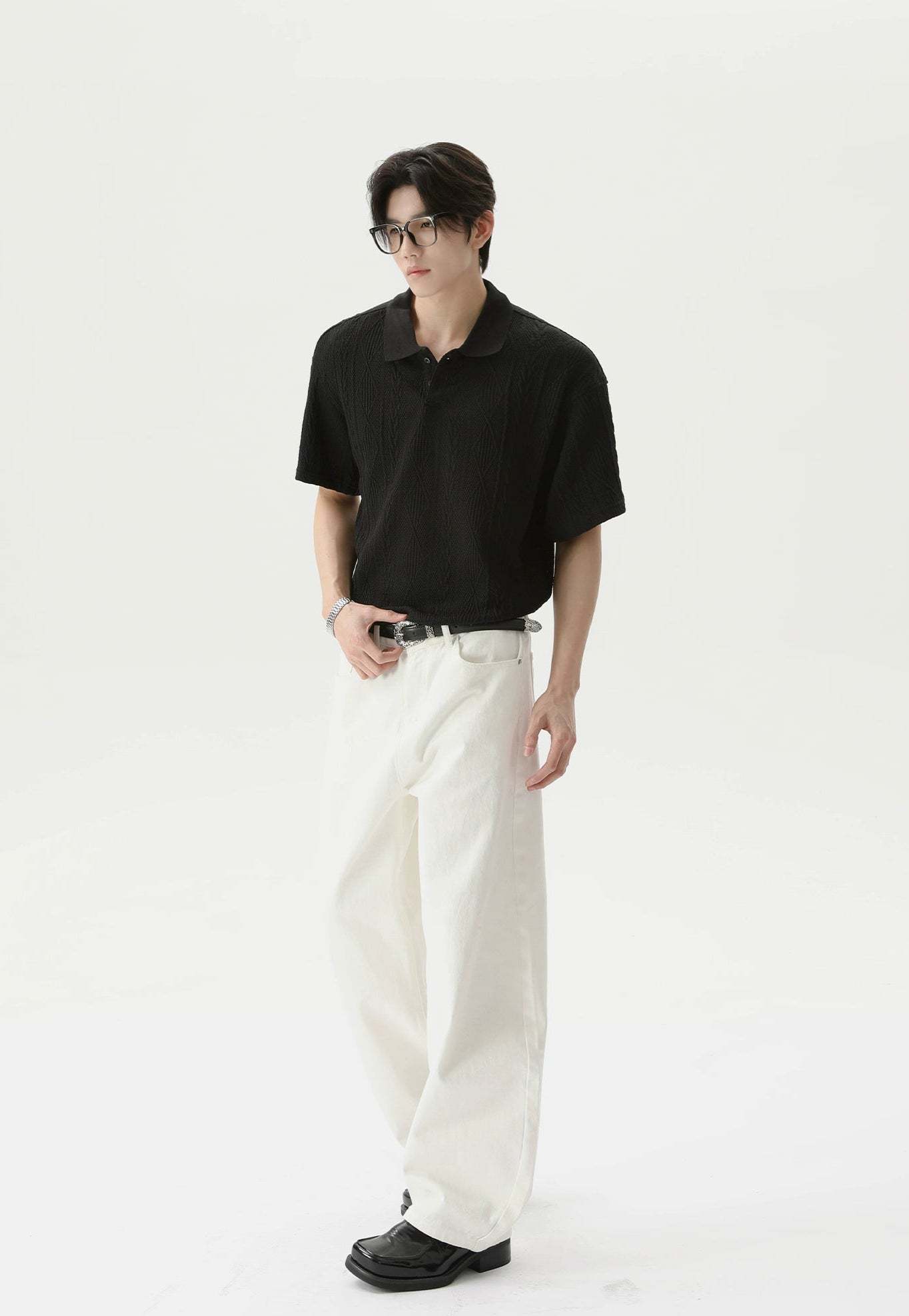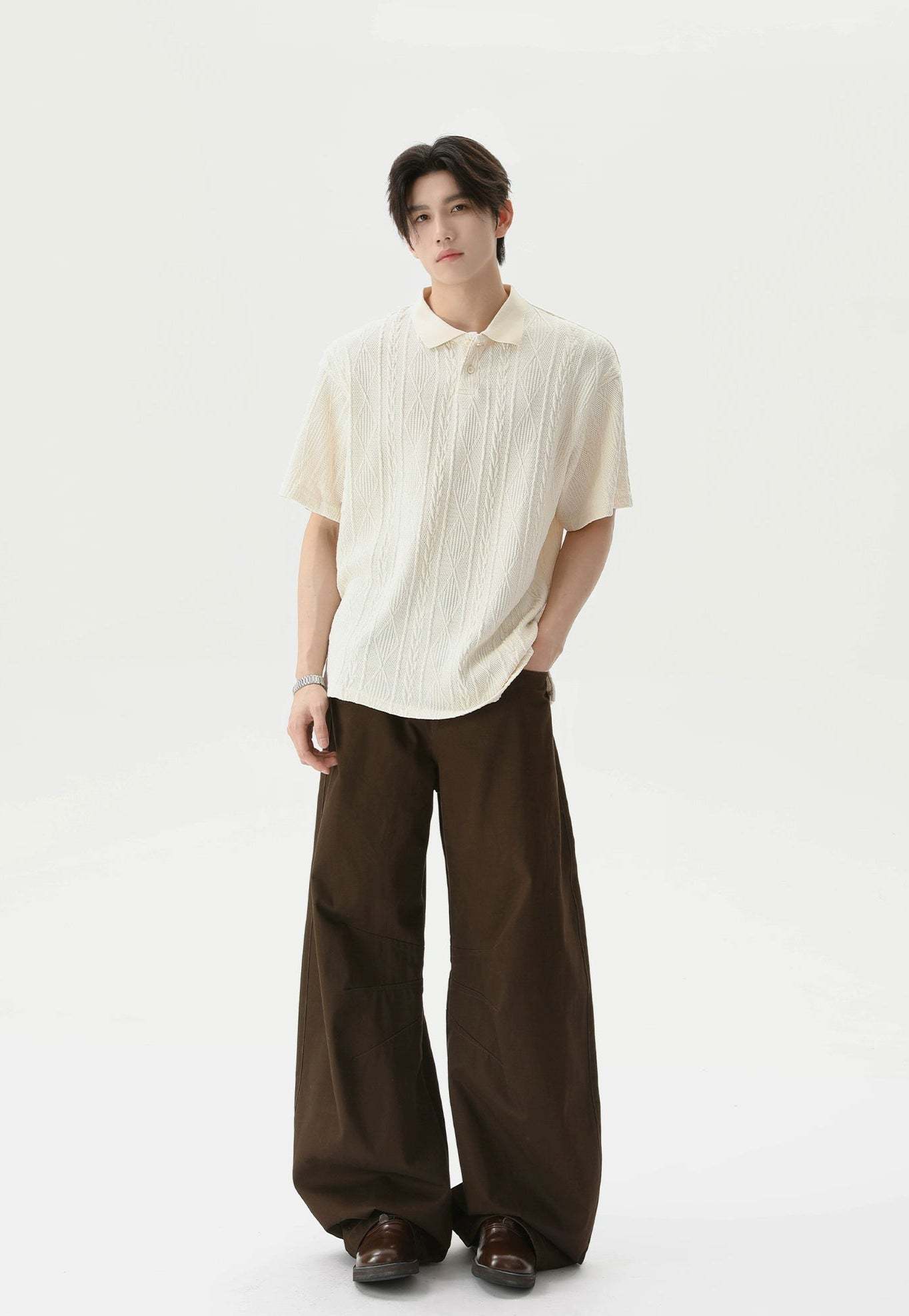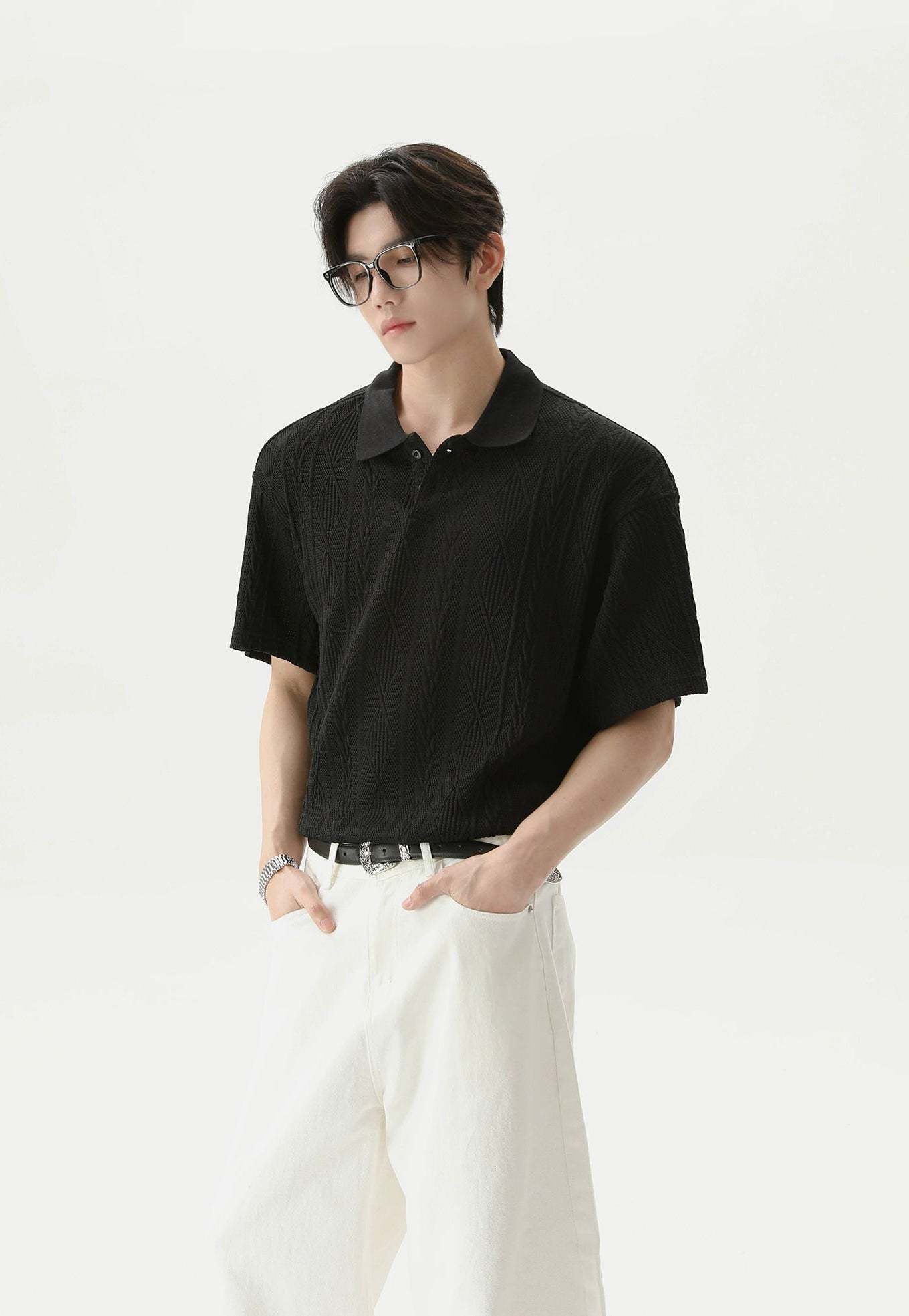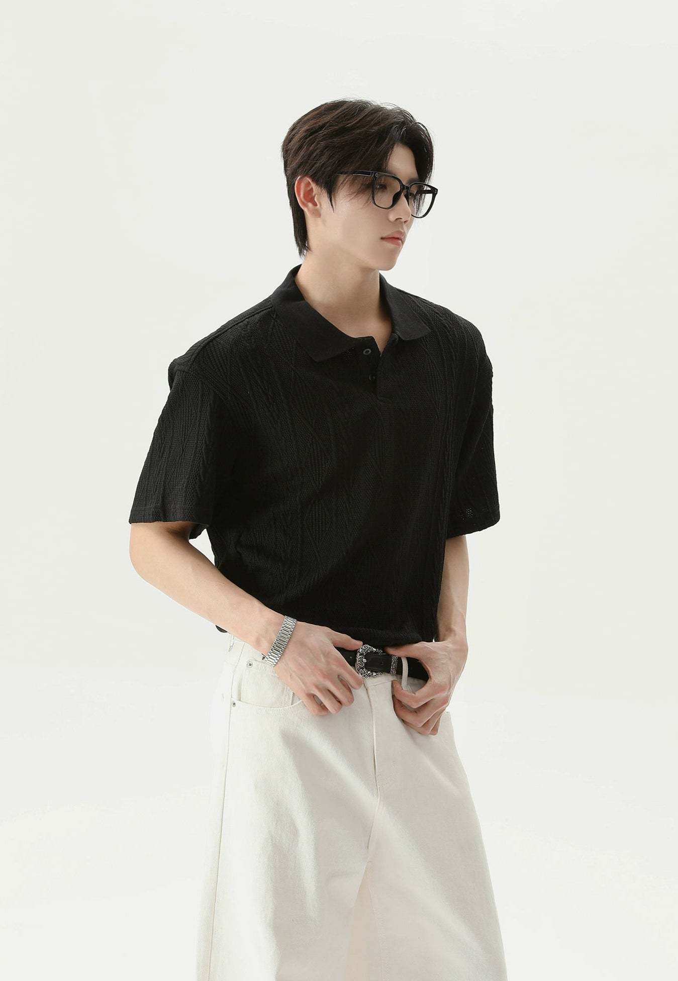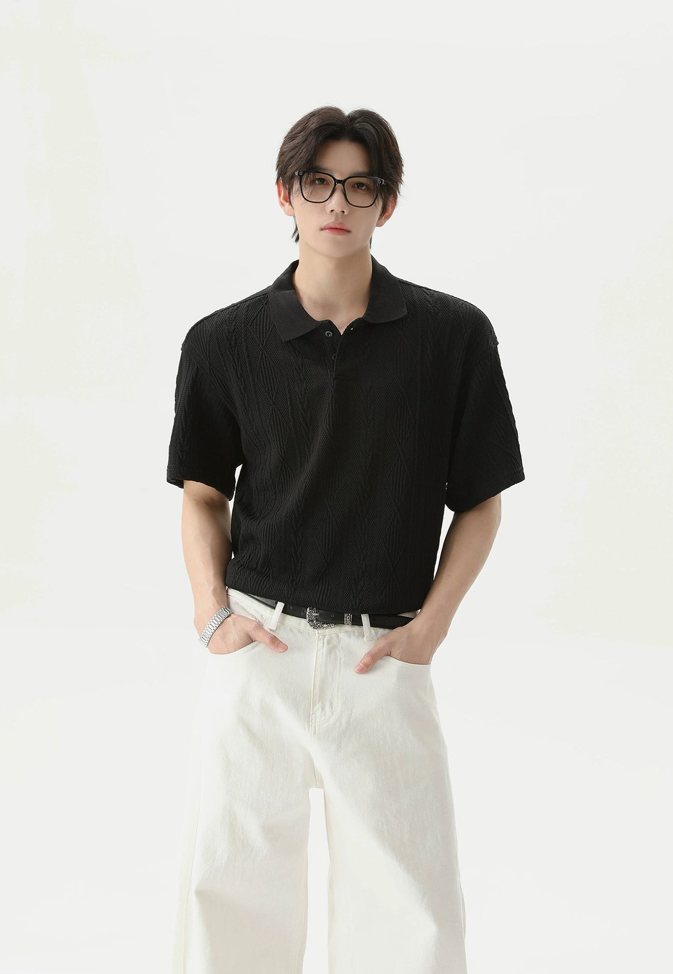 Crafted from a soft, breathable blend of 99.7% polyester and 0.3% spandex, this polo shirt features a lightweight cable knit with a relaxed fit and short sleeves. The classic polo collar and tonal buttons keep it timeless, while the knitted pattern adds a quiet visual punch that sets it apart without trying too hard.