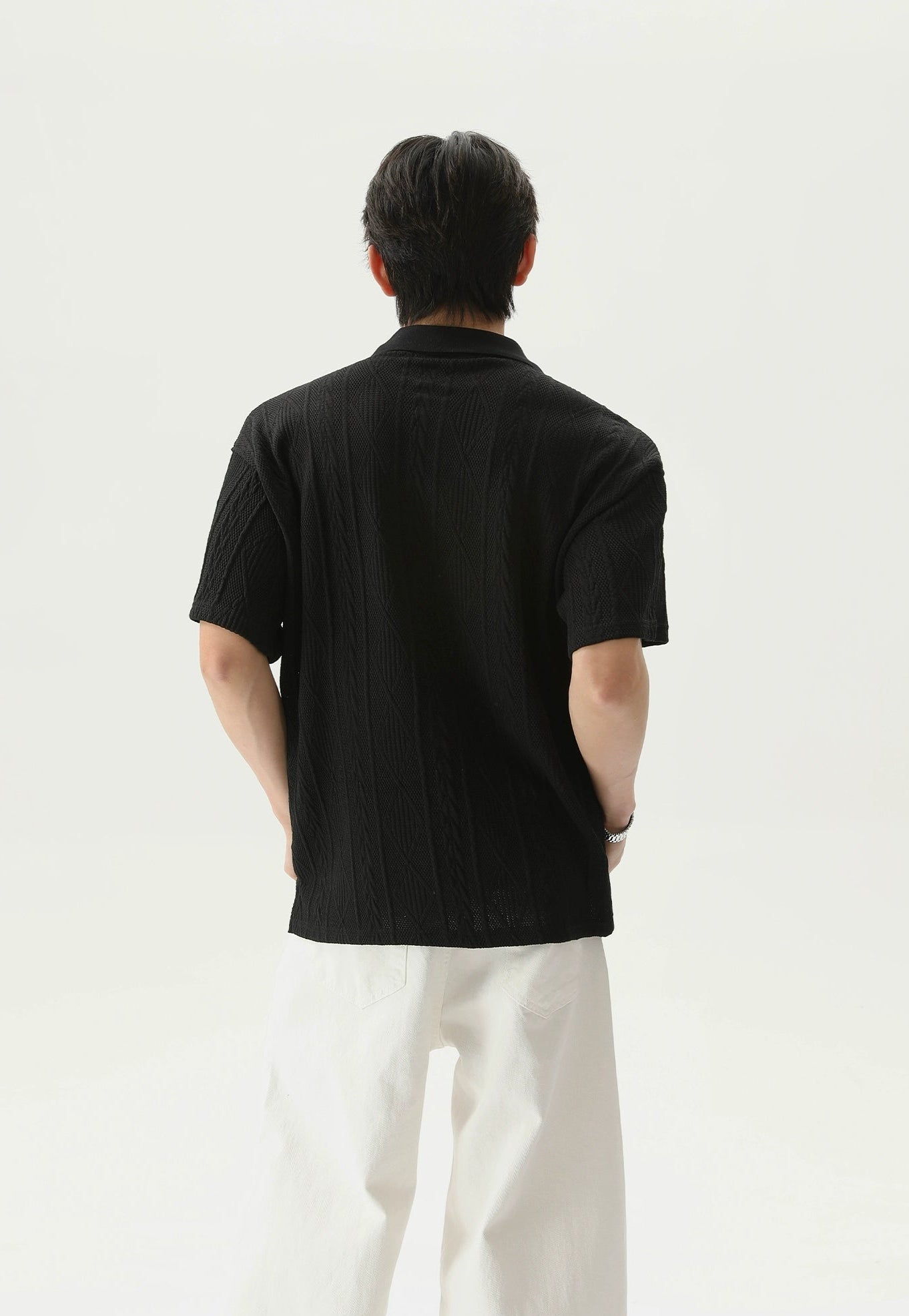 The Textured Cable Knit Short Sleeve Polo Shirt brings subtle structure and clean edge to a laid-back essential. Its standout textured knit gives it a dimensional feel that’s both refined and easygoing.