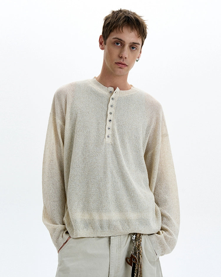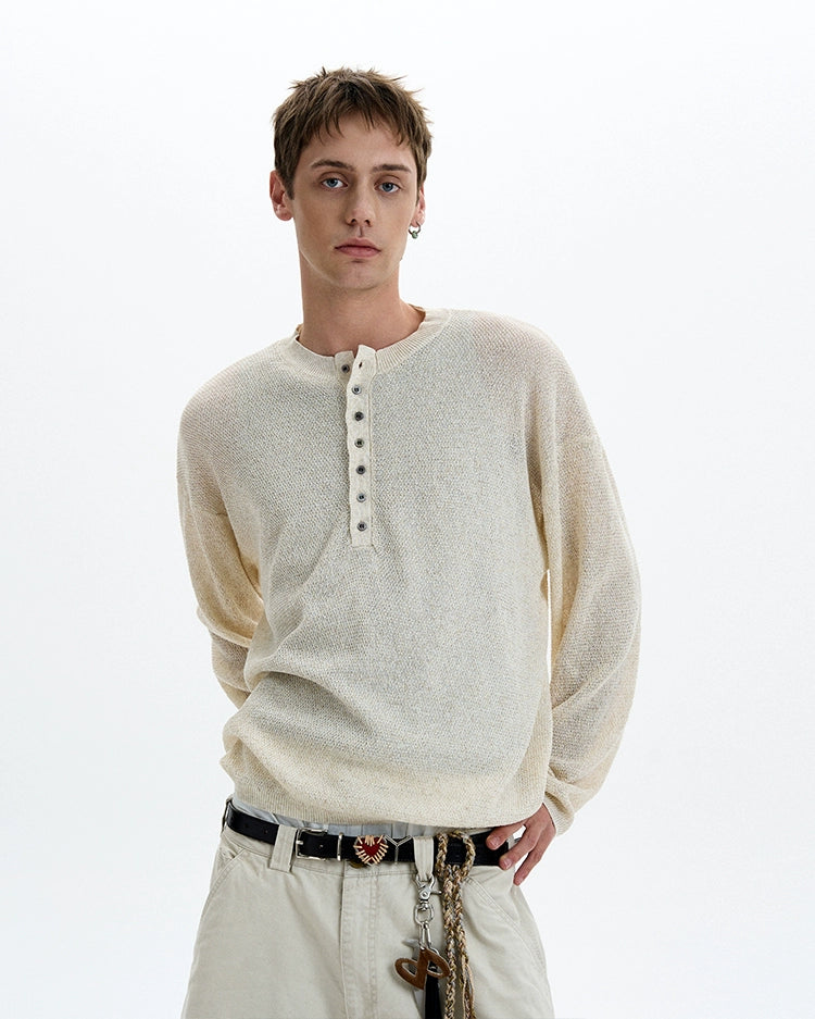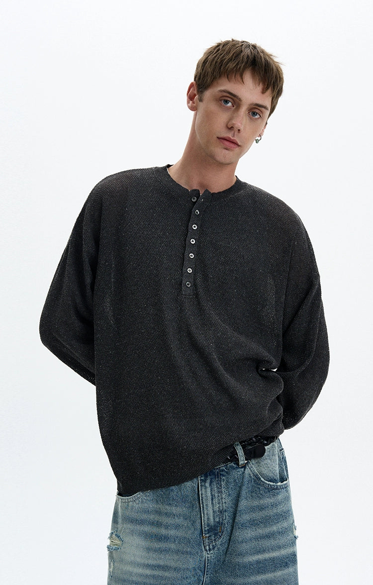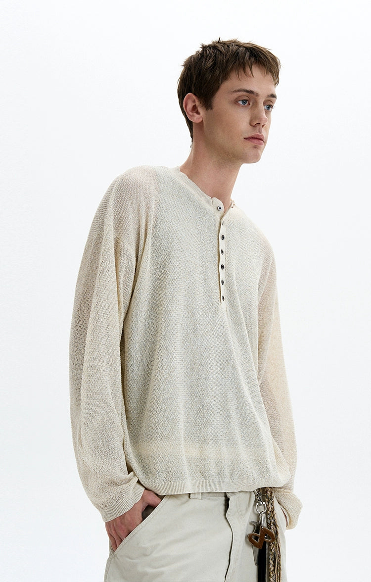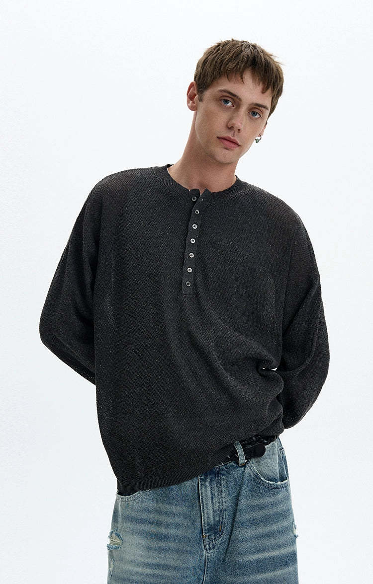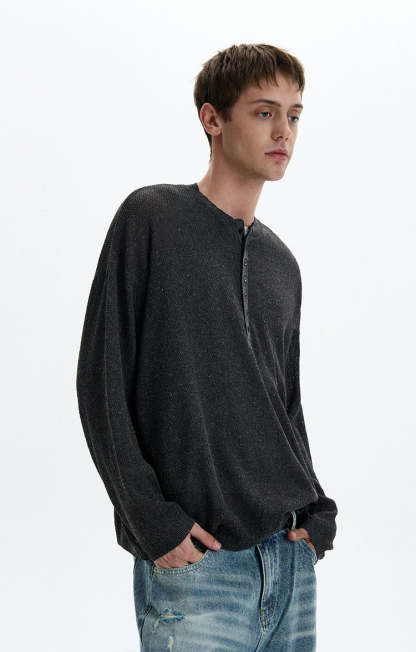 Sheer texture meets subtle grit in this long sleeve Henley top, delivering a standout look without trying too hard.