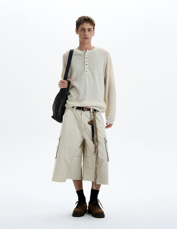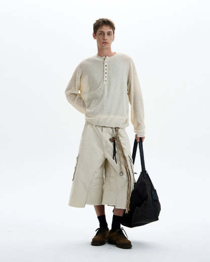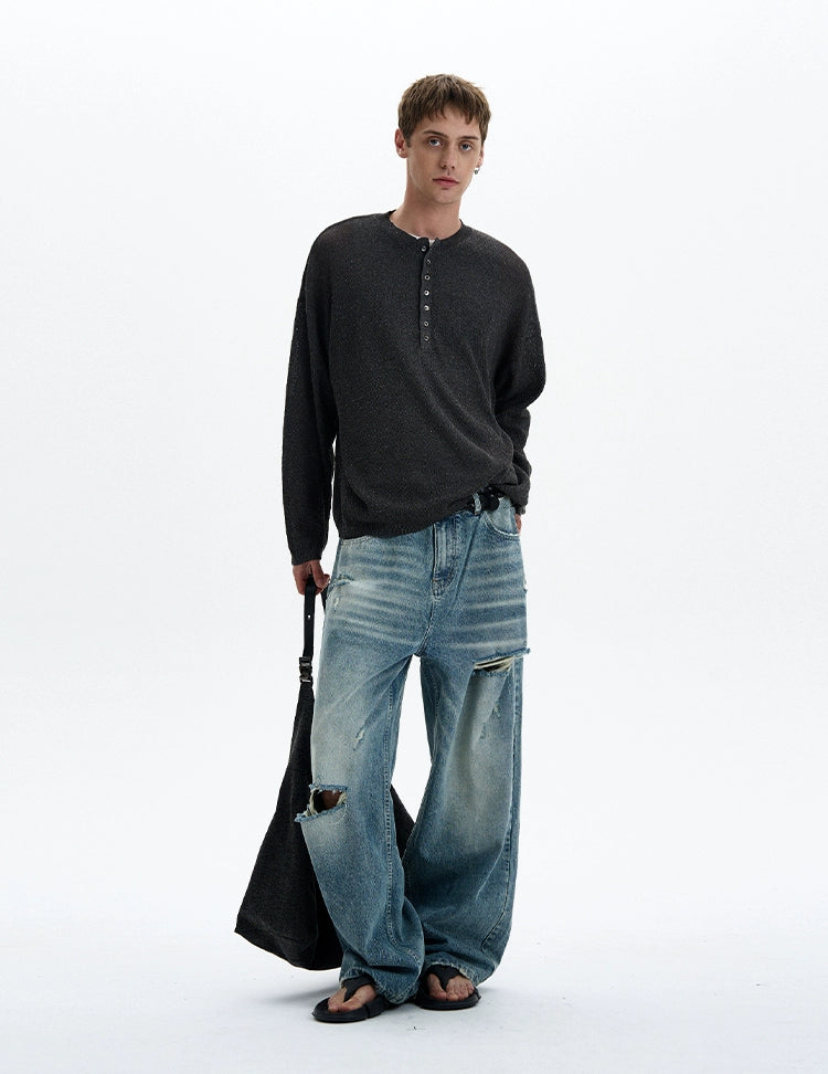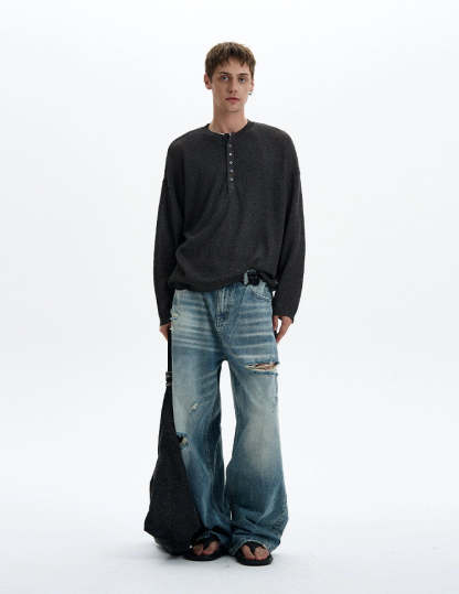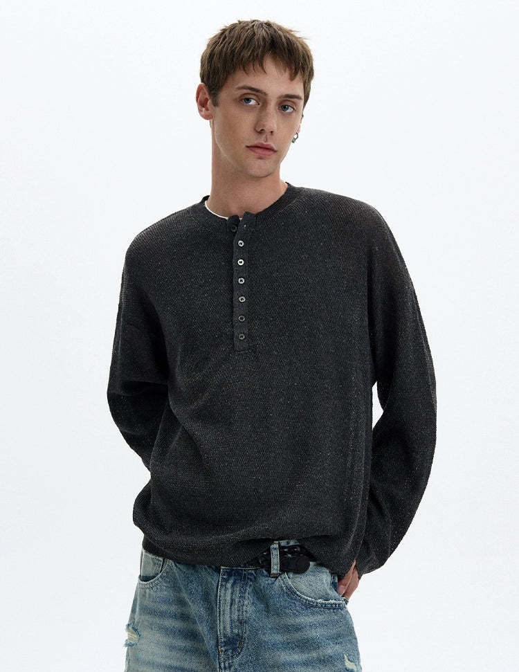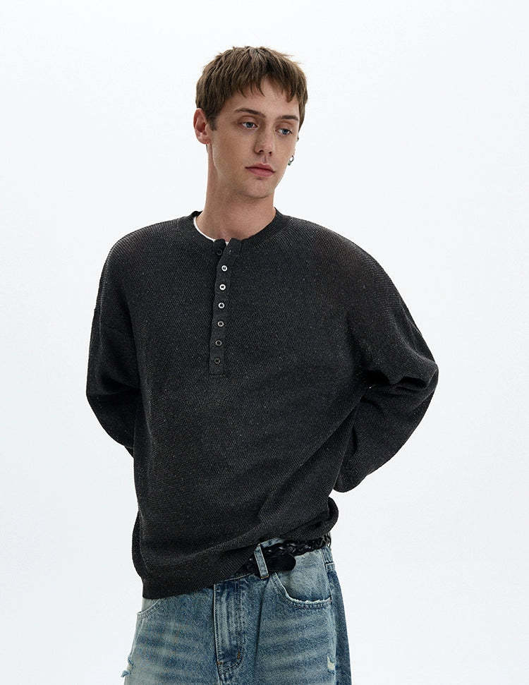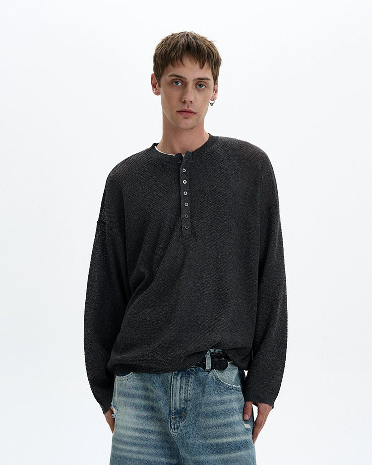 Sheer texture meets subtle grit in this long sleeve Henley top, delivering a standout look without trying too hard.