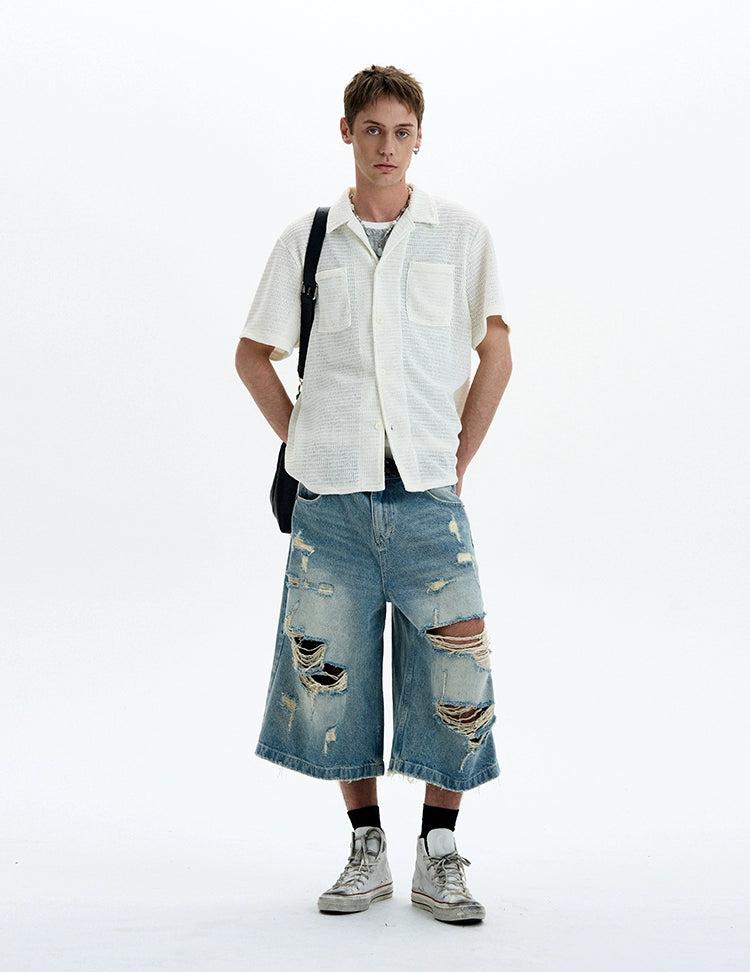 Everything about this textured open-knit button-up hits the sweet spot between laidback and pulled-together.