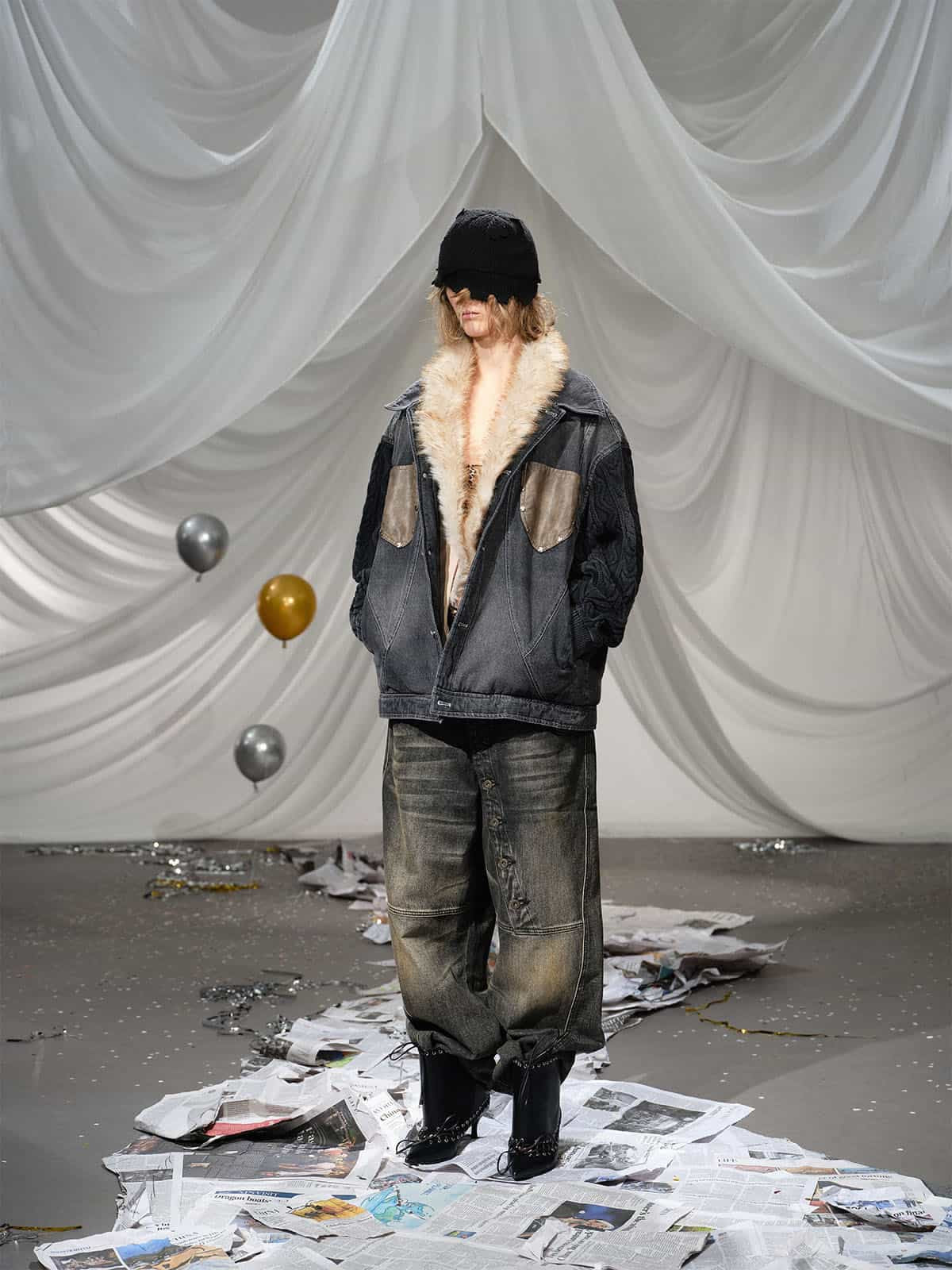 • Unique combination of denim and cable knit sleeves for a trendy appearance