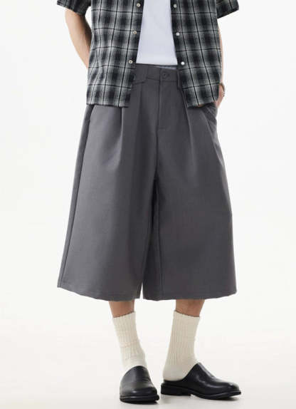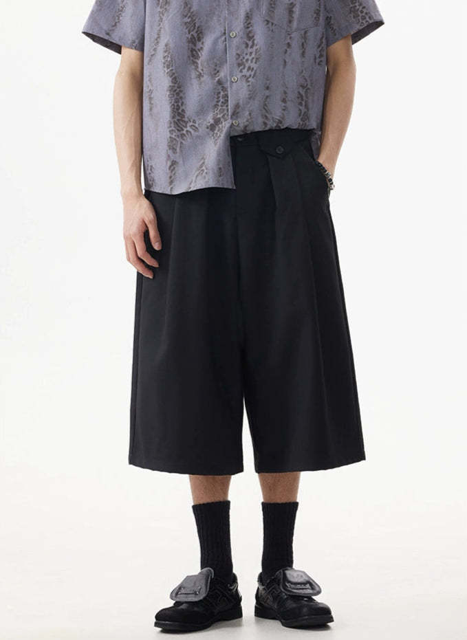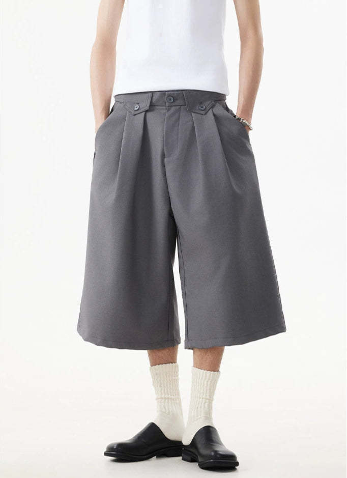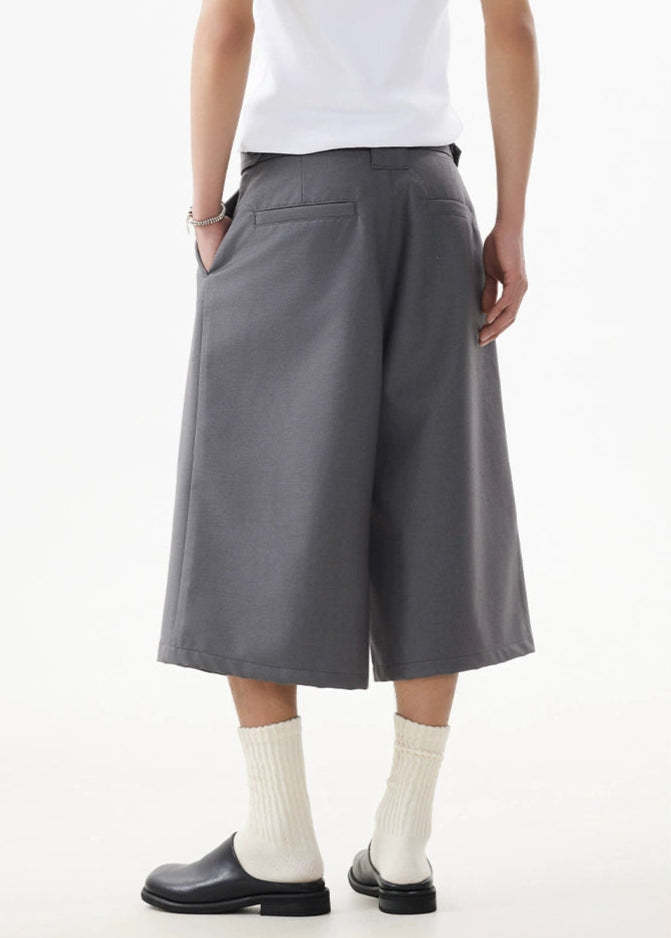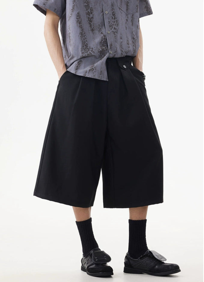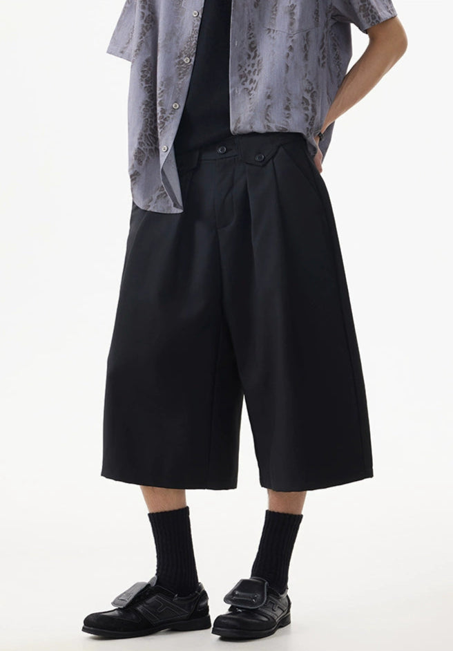 Wide leg silhouette meets sharp tailoring with these long Bermuda shorts — a clean, standout piece that adds real shape to any minimal outfit.